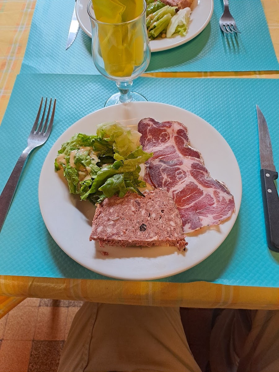 Une mamie de 80 ans, qui continue à concocté des petits plats simples, mais bien bon. Un seul menu proposé, mais il ne manque rien. Tout y est Une entrée, petite crudités avec charcuterie Plat du jour, viande avec garniture. Un morceau de fromage. Dessert. Tout cela pour un prix très très correct A conseiller .